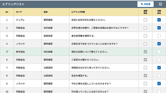 ベテランでも聞き忘れてしまうことがあり、ヒアリング結果にばらつきがある。 -