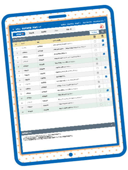 - 該当の紙の調査票を探したり、基幹系システムから出力して持っていく手間が省けます。