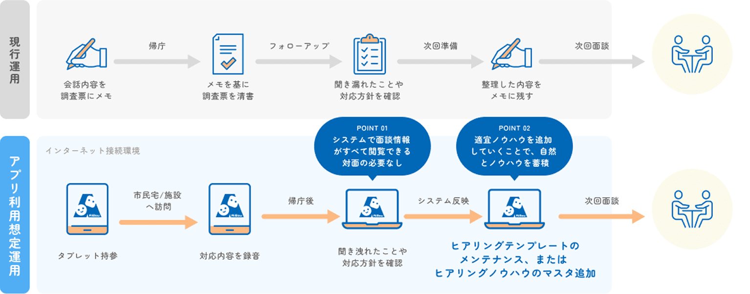 AiBouをインストールしたタブレットを持って市民宅、施設へ訪問。