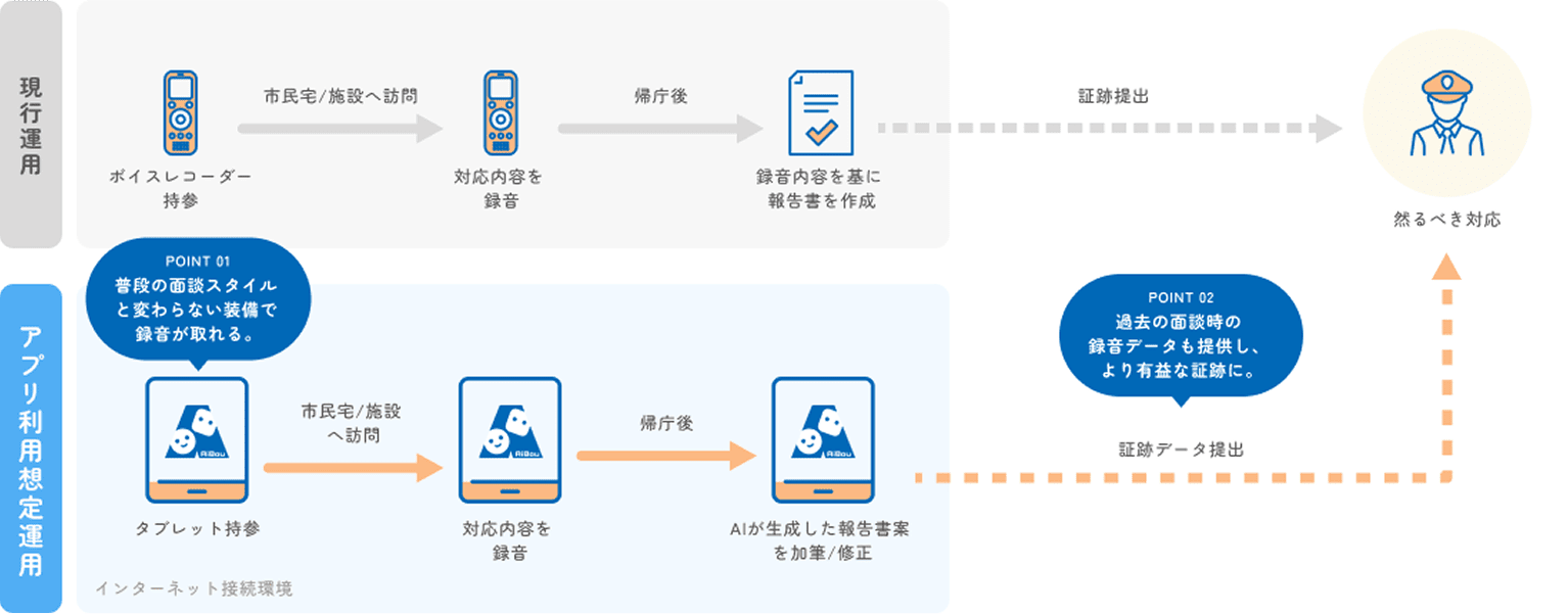 - タブレットで録音した音声データを証跡データとして然るべき組織へ提出可能