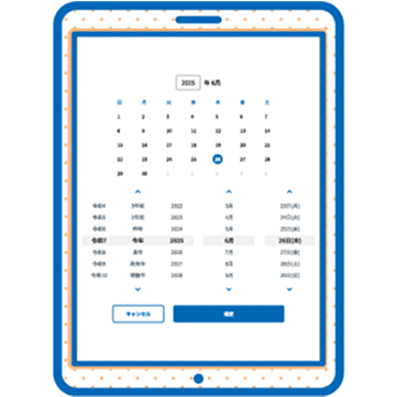 工夫を凝らしたドラム式のカレンダー入力で、西暦⇔和暦に加えて〇年前などの曖昧な日付の脳内変換が不要になります。