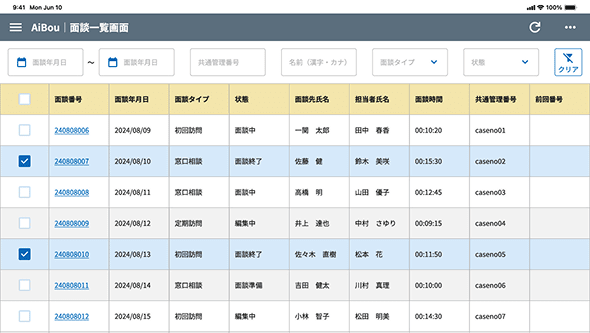 そんなお声から、面談現場や記録管理に役立つサポート機能を豊富に搭載しています。