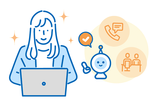 AiBouは電話や窓口での応対にも利用できます。AI機能を活用いただくことで作業を効率化し、円滑な業務運営の一翼を担います。